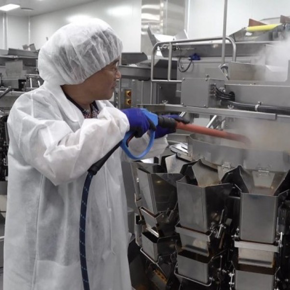 Czyszczenie parą umożliwia usuwanie osadów produkcyjnych i mikroorganizmów bez użycia agresywnej chemii. Niska wilgotność i precyzyjna aplikacja pozwalają zachować kontrolę procesową i spełniać wysokie wymagania sanitarne.